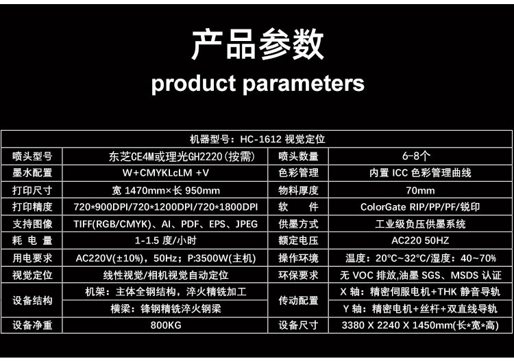 設備型號:HC-1612視覺定位UV打印機